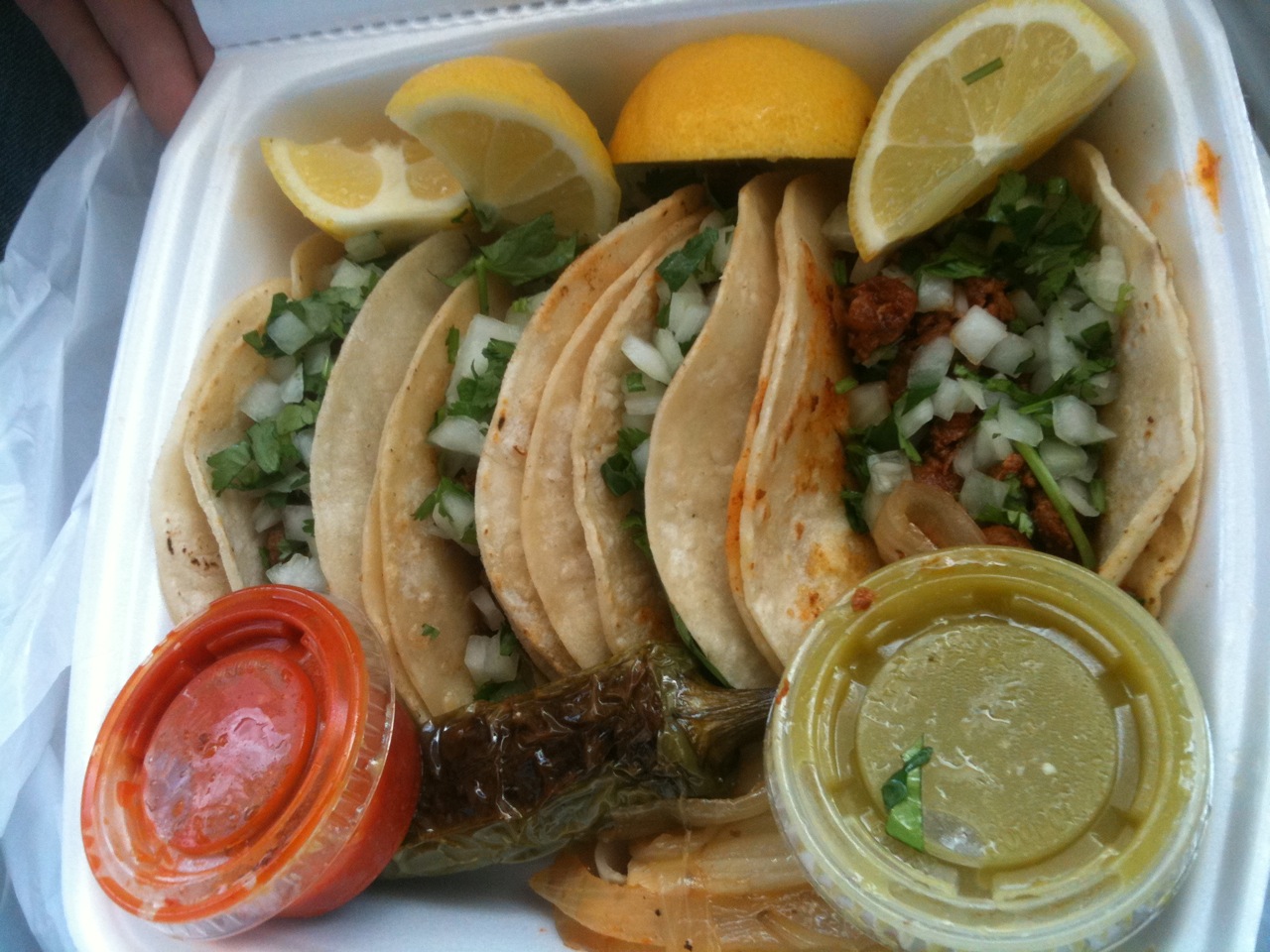 So we took a quick excursion to Taco Hut at the Conoco gas station to grab two beef fajita and two pork tacos. I ordered my usual: Corn tortillas, onion, cilantro and hot sauce.