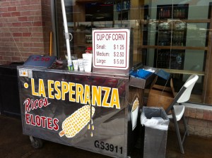 I was recently asked “what’s that corn stuff called?” Well, it’s called Elote and Dallas’ own Fuel City gas station has one of the best outside carts serving small, medium and large “Cups of Corn.”