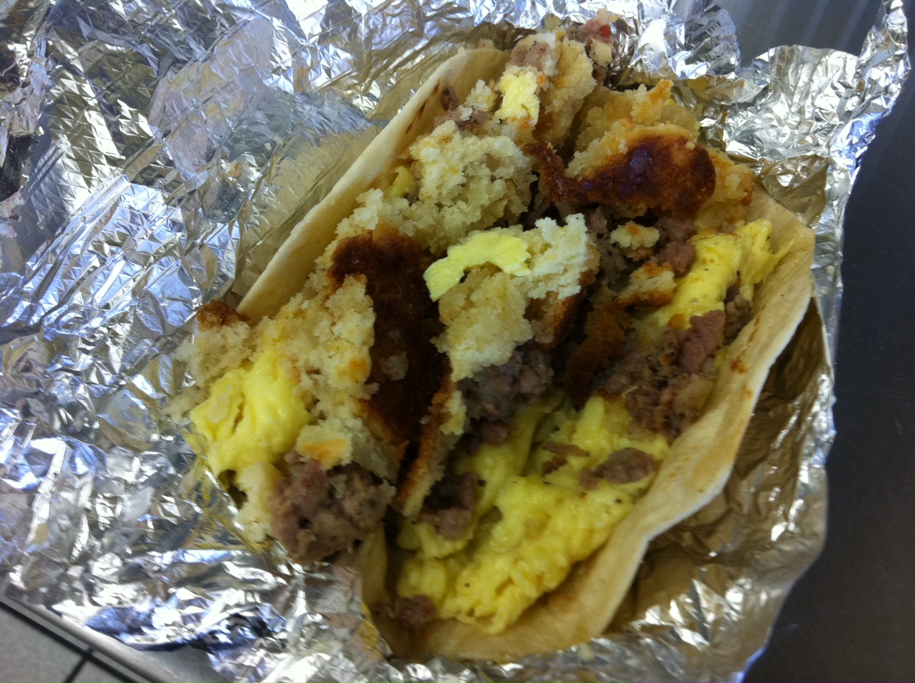 The kitchen makes Specialty Breakfast Tacos. One definitely caught my attention: The Jalapeno-Cheddar Biscuit with Sausage, Honey and Egg. This taco is amazing. The crumbled biscuit is full of flavor and still retains its integrity in the taco. Bite-size chunks of crumbled sausage accompanies the biscuit and eggs with a minor touch of honey it all comes together for breakfast taco greatness.