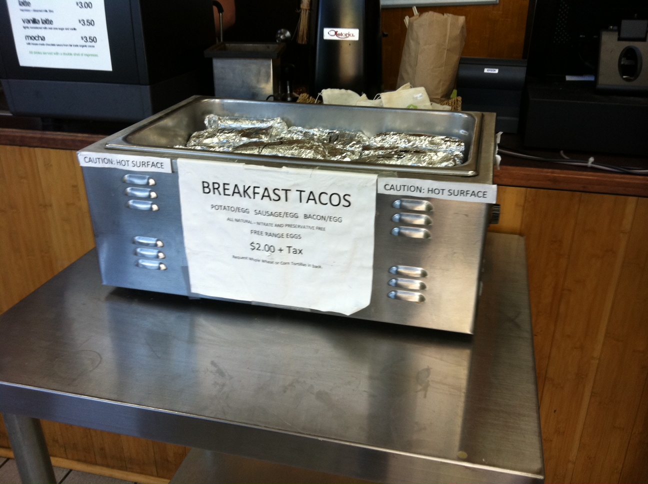 The bin breakfast tacos are decent too. The simple egg and bacon taco with some hot sauce and a cup of coffee is a great way to start the morning. Of course, you can get cheaper gas station breakfast tacos elsewhere, but with better ingredients like free range eggs and with some creative specialty breakfast taco options The Green Spot is worth the stop.