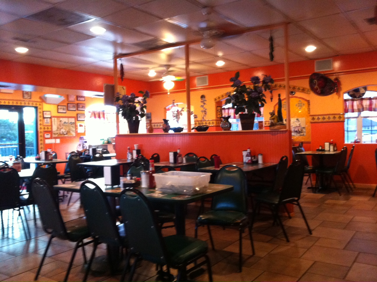 Unlike most gas station taquerias that are nestled into the back of the convenience store’s shopping area, this place has its own restaurant attached to the store. Walking in there are several tables, decorations and a small to-go window in back.