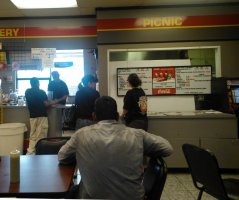 After a quick u-turn, I entered a rather busy gas station that had a small line waiting to order Mexican food.