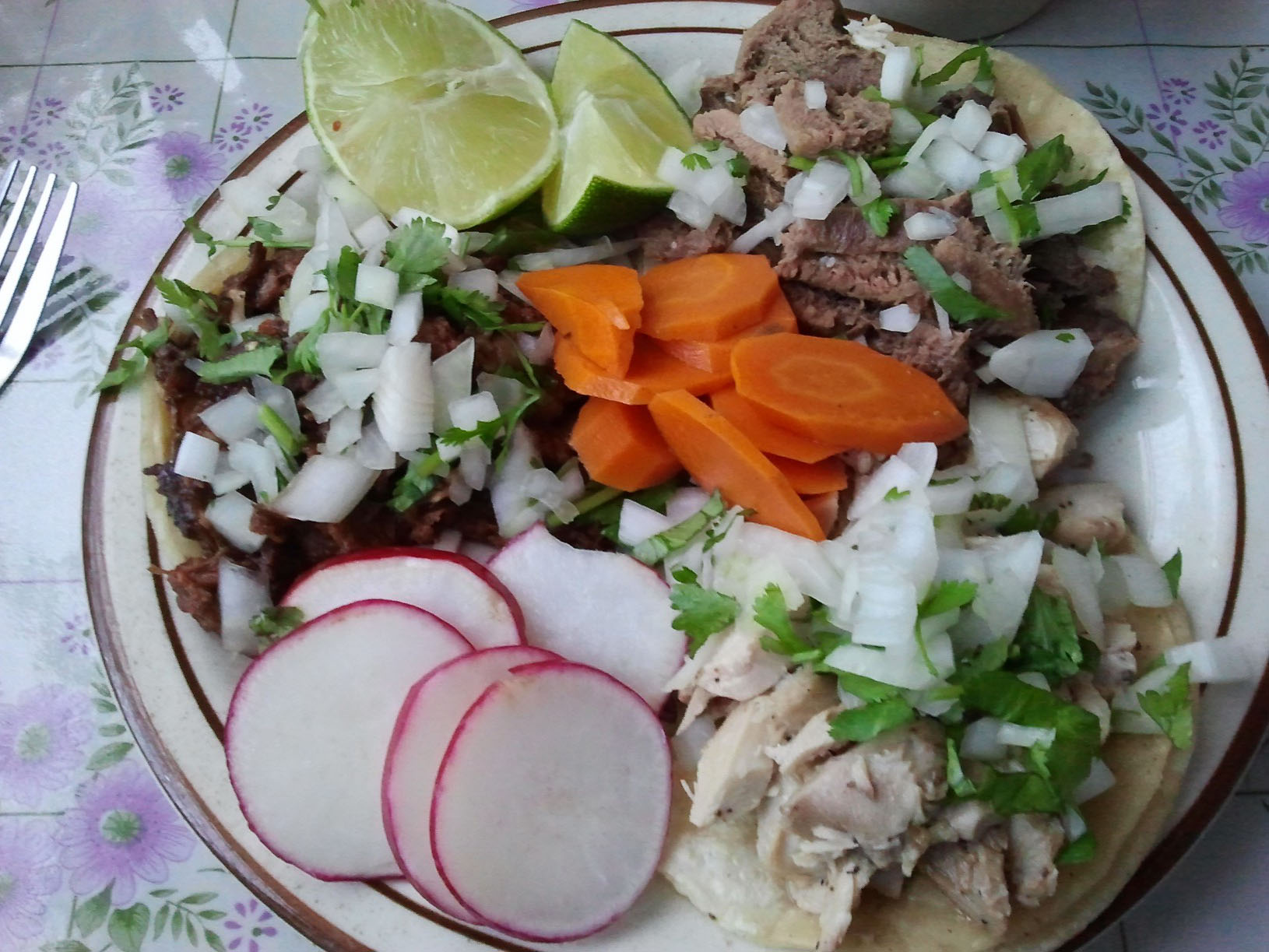 Since it was a fairly lazy Saturday I decided to dine-in and my tacos arrived with a generous amount of meat on each corn tortilla and plated with sliced carrots and radishes.